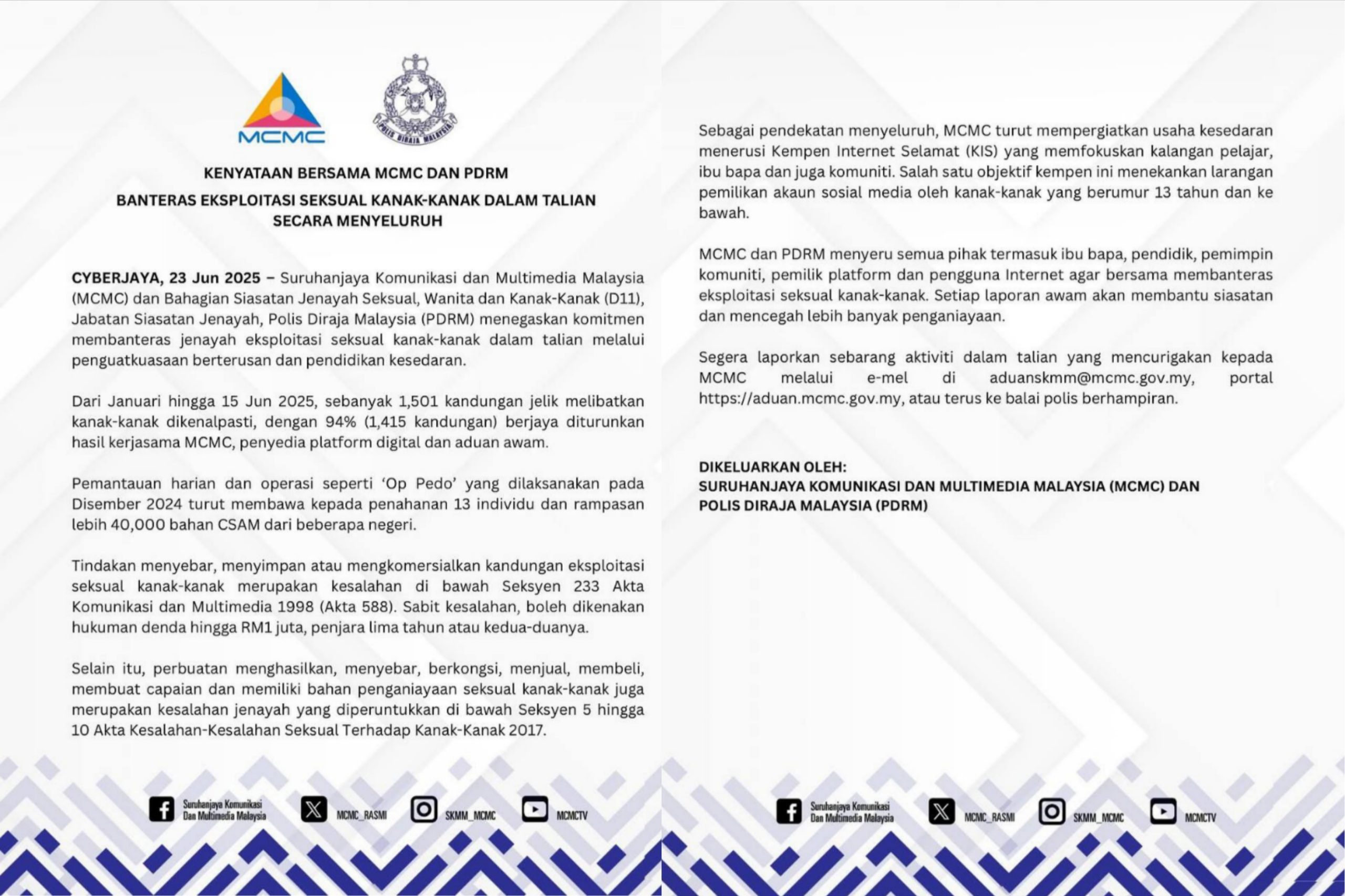 KENYATAAN BERSAMA MCMC DAN PDRM