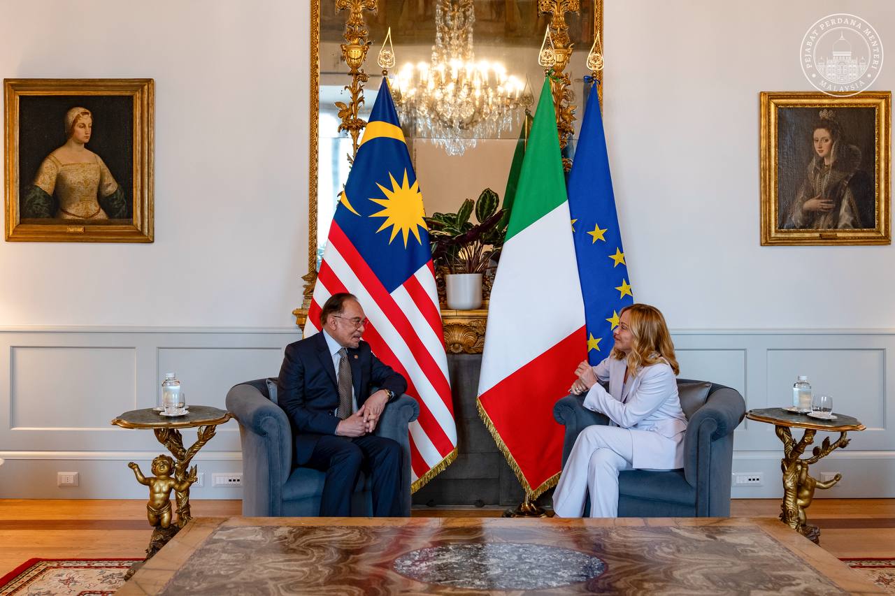 Dalam pertemuan antara YAB Perdana Menteri Dato’ Sri Anwar Ibrahim dan Perdana Menteri Giorgia Meloni, Malaysia dan Itali turut bertukar pandangan berhubung isu-isu serantau dan antarabangsa yang memerlukan penyelesaian kolektif berlandaskan prinsip keamanan sejagat, keadilan dan saling menghormati.