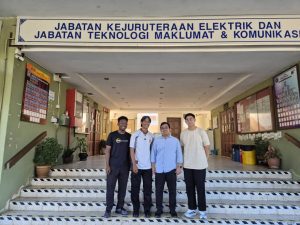 (Keterangan gambar: Pelajar jurusan IT dari Jabatan Teknologi Maklumat, Politeknik Seberang Perai bersama pensyarah, Encik Muhammad Fareez Bin Borhanudin mewakili PSP Pra Kelayakan Worldskill Malaysia Belia)