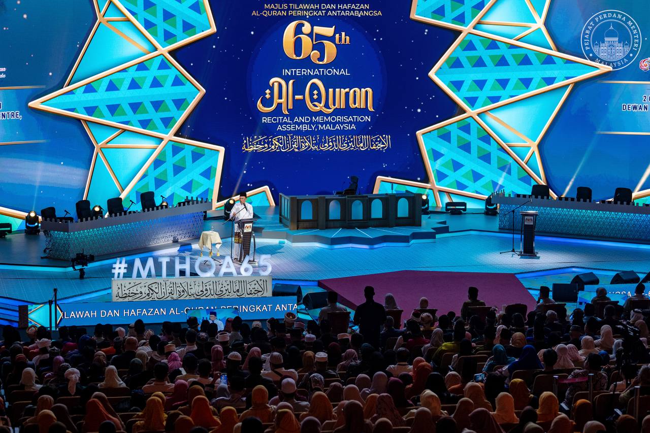 YAB Perdana Menteri Dato’ Sri Anwar Ibrahim berpeluang hadir dalam Majlis Perasmian Pembukaan Tilawah dan Hafazan Al-Quran Peringkat Antarabangsa ke-65 bagi tahun 1447 H / 2025 M di Kuala Lumpur yang bermula dari hari ini sehingga 9 Ogos 2025.