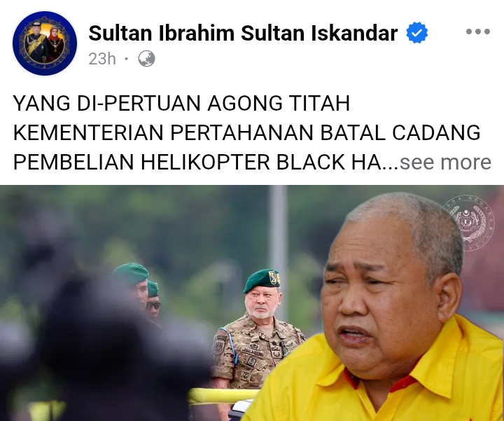 PUTRA menyatakan sokongan penuh terhadap titah berdaulat KDYMM Seri Paduka Baginda Yang di-Pertuan Agong Sultan Ibrahim, yang menegaskan supaya Kementerian Pertahanan membatalkan cadangan pembelian helikopter Black Hawk lama berusia lebih 30 tahun.